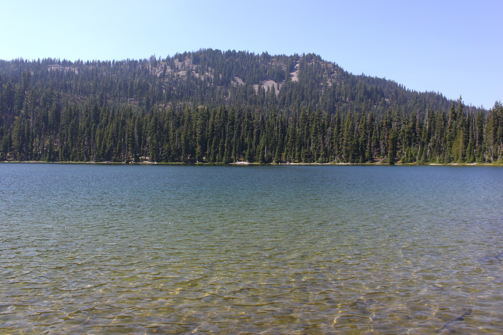 The first four miles consist of a pretty good uphill push through viewless forest. The only break in the relative monotony is Frog Lake which is not considered to be one of the seven lakes. The small lake lay at the foot of Venus, a celestially named peak (along with Jupiter, the next peak over from Venus) while the sky above was pretty hazy due to all the wildfires in eastern Oregon and southern Idaho.